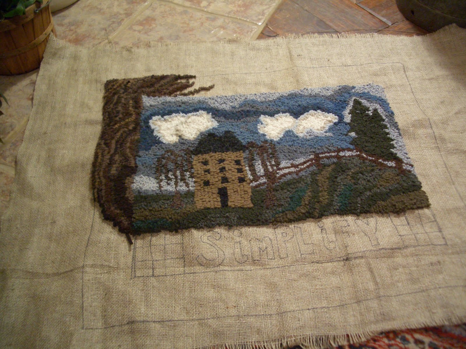 I thought I would show some of my progress on the rug. I am enjoying the border alot more than I thought I would. In the grass and sky areas I did it in chucks, the border I am trying to do it more spread out. I don't know if that makes any sense.... I like the borders this way.